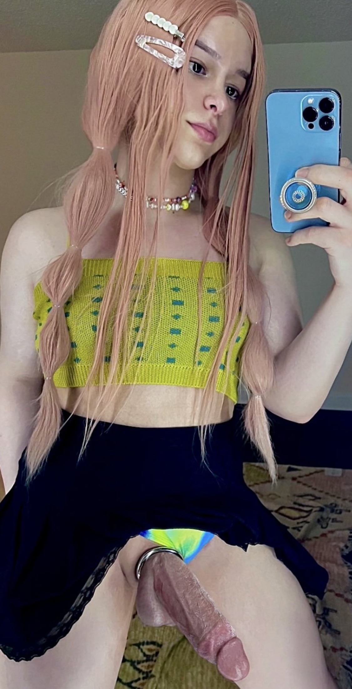 Een zeer lekker jong meisje met mooi lang haar, een A cupje en verder niet groot van stuk, maar wel voorzien van een heerlijk piemeltje! Het is maar een klein ding, zeker nu het slap is, maar wanneer het stijf is, kan men zich daar wel degelijk goed mee vermaken! En dat is dan ook wat ze graag wil meemaken: weer eens een lekkere pot sex met een geile shemale lover!